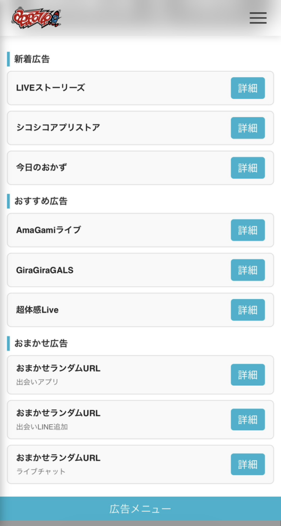 ひとつのURLから複数の色々な広告へ自動的に振り分けてくれるものです。appollo全体で売上が出ている広告が多く表示されるため、